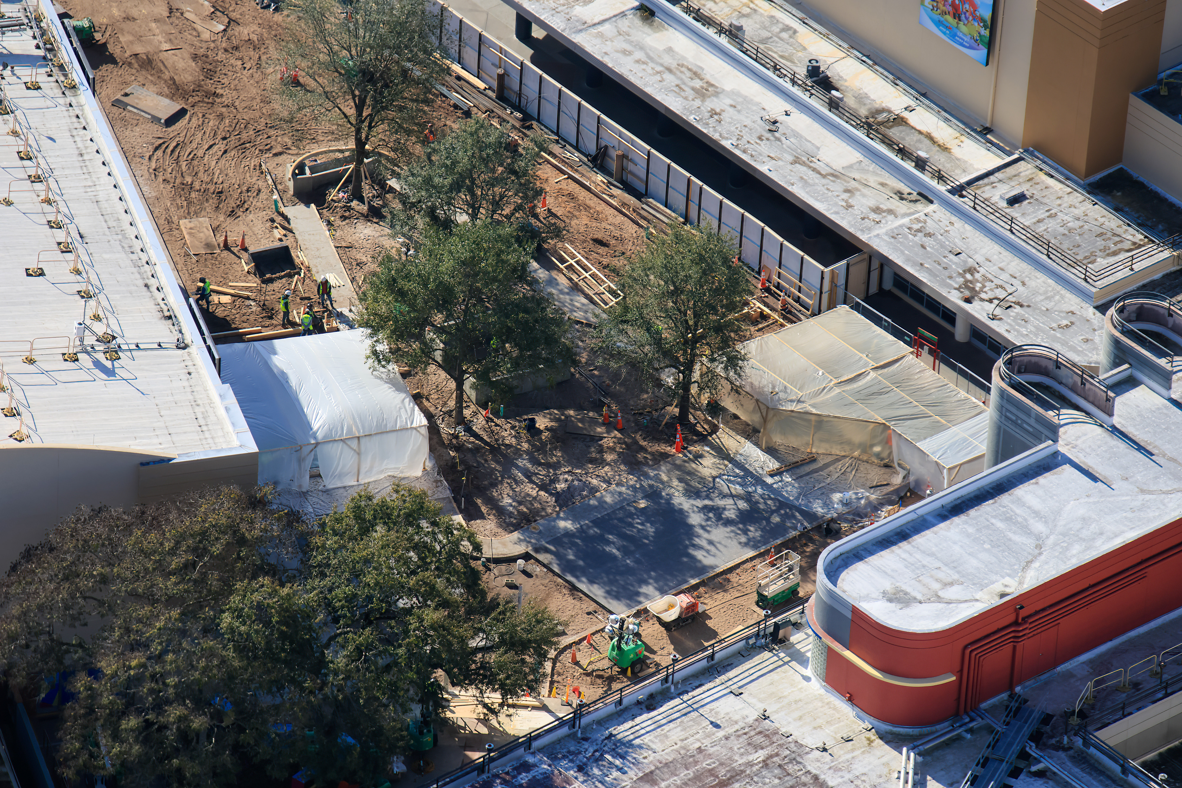 - Image #3: Aerial photo shows trees recently planted in Walt Disney Studios Courtyard at Disney’s Hollywood Studios. Buildings near the courtyard are being repainted.