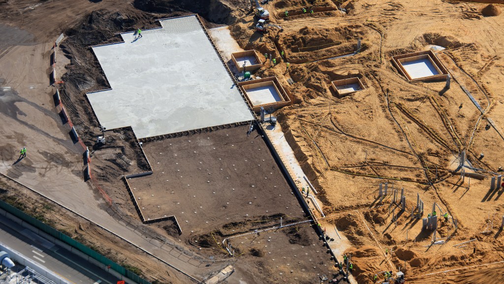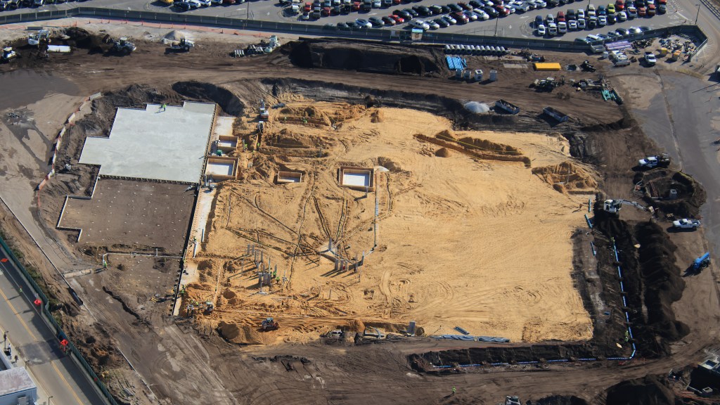 - Image #4: Aerial photo shows recently poured concrete for part of Monstropolis roller coaster show building in Disney’s Hollywood Studios.