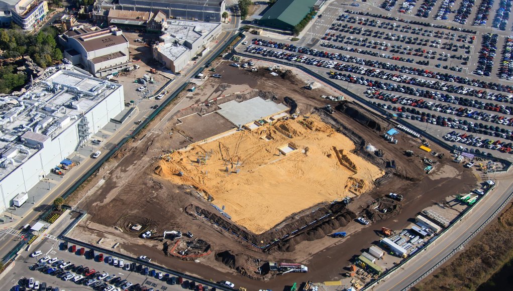 - Image #1: Aerial look at Monstropolis roller coaster construction site in Disney’s Hollywood Studios. Utility conduits placed in the sand on top of show building’s concrete floor, similar to parts of building. In case you didn’t know, this area used to be wetlands.