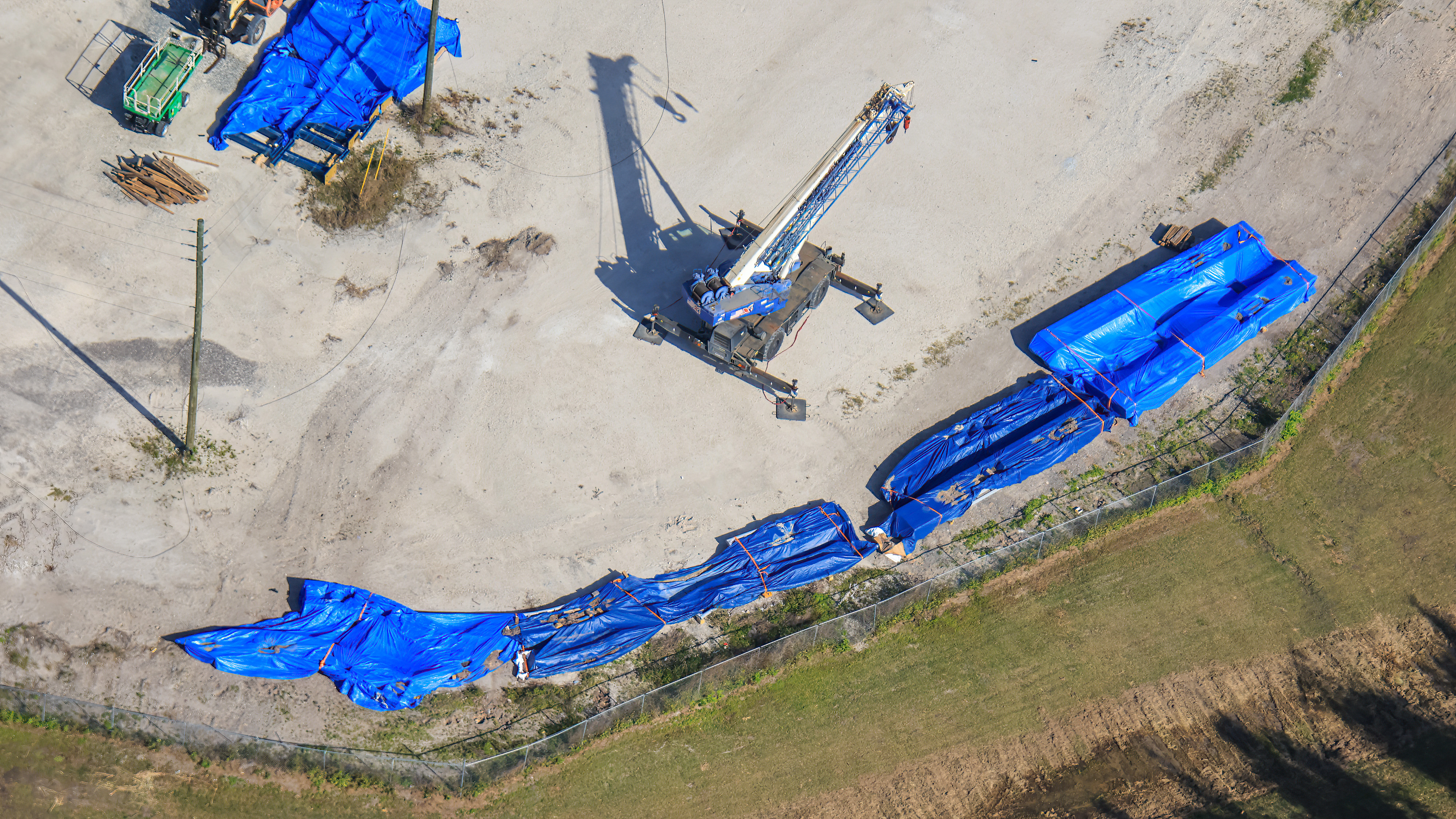 - Image #5, #6, #7: Aerial look at Fast & Furious: Hollywood Drift track staged near Universal’s Epic Universe. Blue tarps cover track.