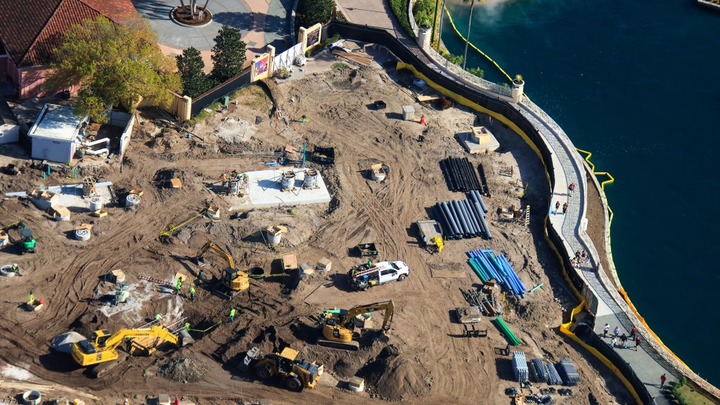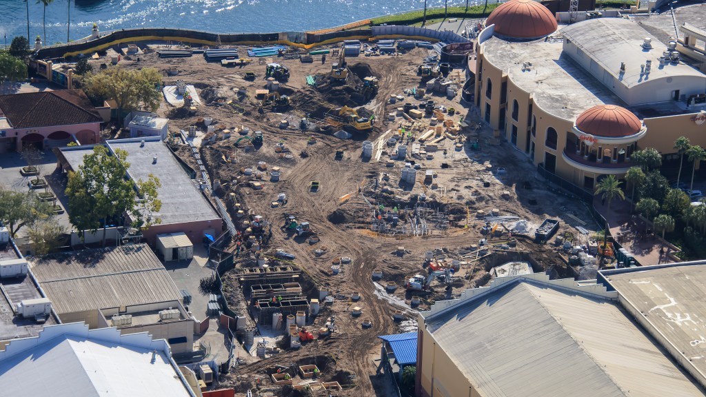 - Image #39, #40, #41: Aerial look of Fast & Furious: Hollywood Drift construction near Universal CityWalk Orlando waterfront.