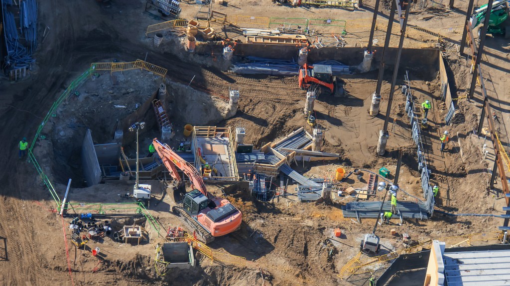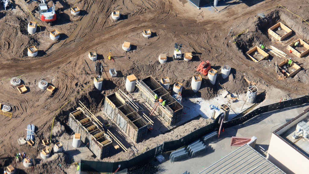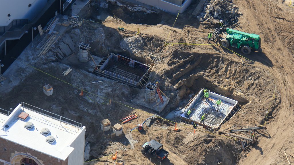 - Image #36, #37, #38: Aerial photos show the construction site’s carpentry area, and it’s most recent deep excavation.