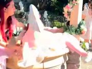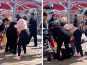 Watch a group of woman hit a woman on the ground on Pixar Pier at Disney California Adventure in a video in this article...